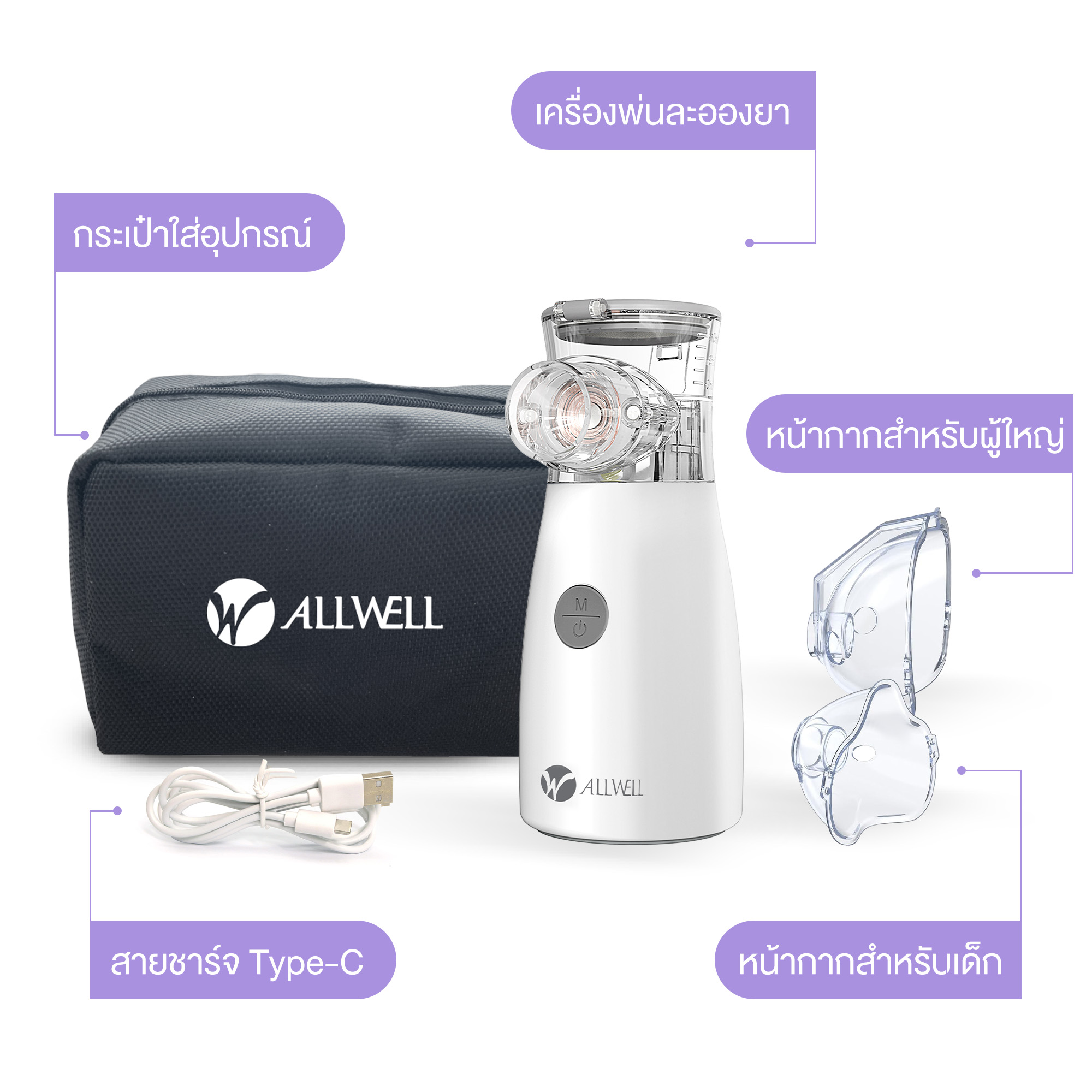 - อุปกรณ์การใช้งานครบชุด เครื่องพ่นละอองยา FlowFresh, หน้ากากสำหรับผู้ใหญ่, หน้ากากสำหรับเด็ก, สายชาร์จ Type-C และกระเป๋า