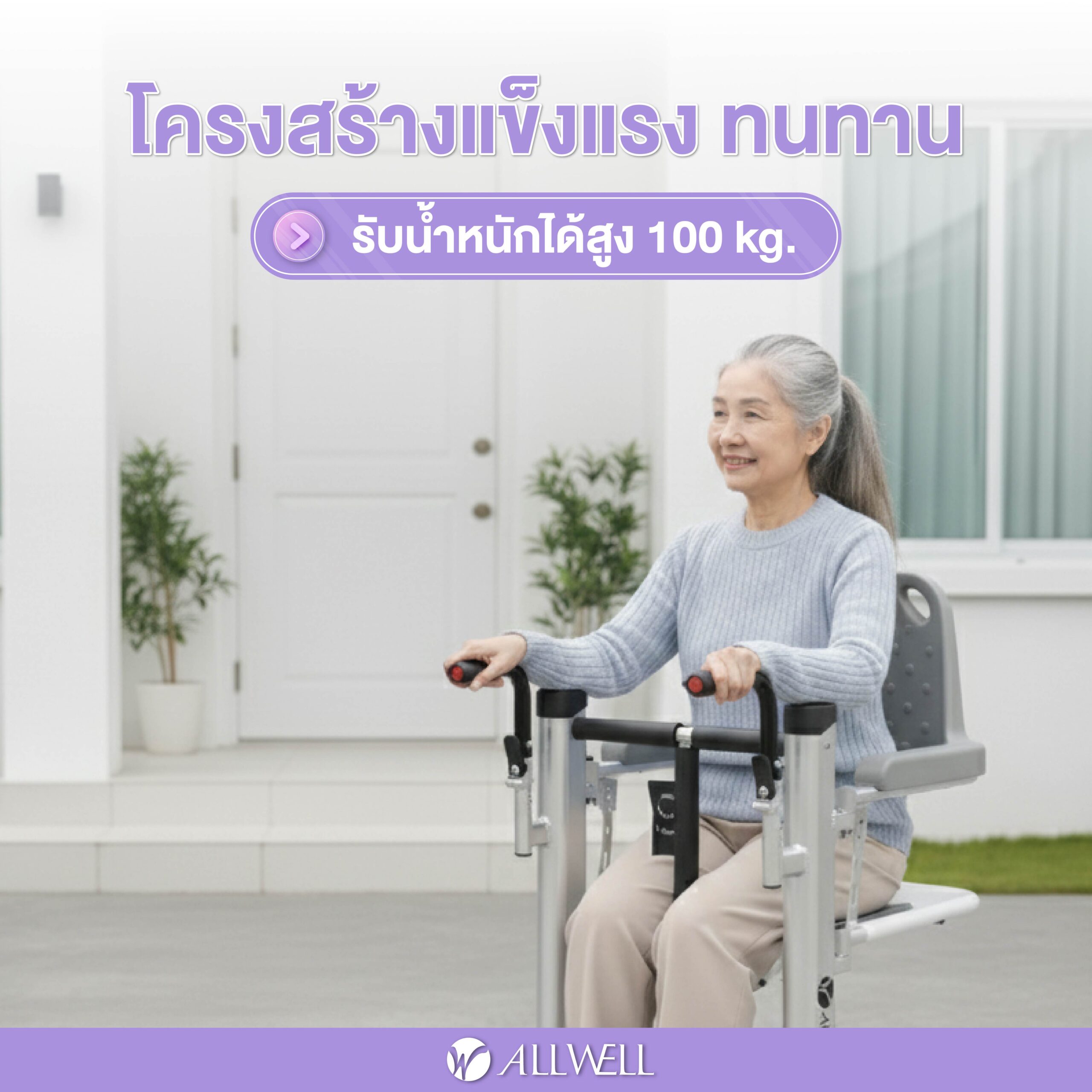 - โครงสร้างอะลูมิเนียม รองรับน้ำหนักได้สูง 100 kg