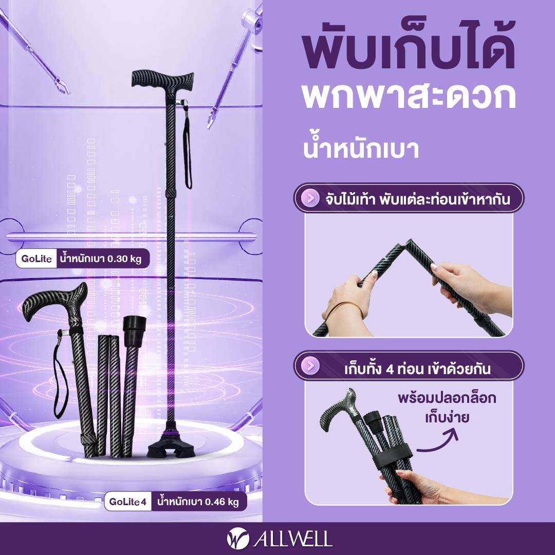 ไม้เท้าช่วยเดินพับได้ รุ่น GOLITE